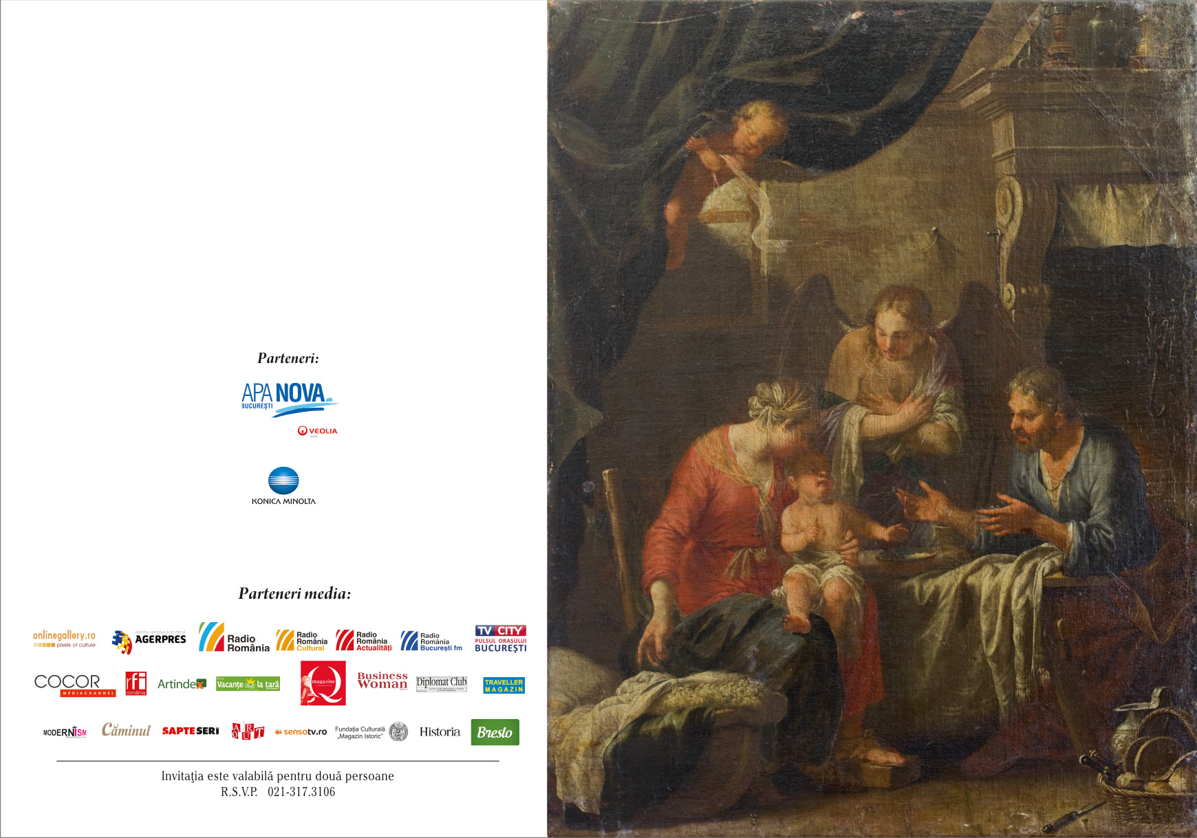 Parteneri media: Onlinegallery.ro, Agenţia Naţională de Presă „Agerpres”, TVCity, Radio France International, Vacanţe la ţară, Traveller Magazin, Diplomat Club, Radio România Actualităţi, Radio România Cultural, Agenţia de Presă „Rador”, Şapte Seri, Art Out, Căminul, Business Woman,  Q Magazine, Artindex, Fundaţia Culturală Magazin Istoric, Historia, Breslo.ro, Modernism.ro., , SensoTV.