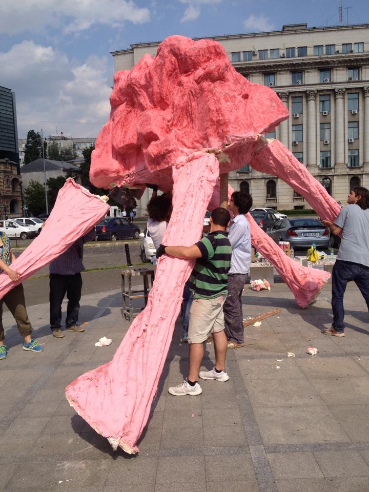 Arta contemporană nu e politicoasă, apare acolo unde te aştepţi mai puţin şi apoi se ţine scai de privirea ta. Uneori e de-a dreptul insistentă, dar asta doar pentru că are ceva de spus. Cam aşa stau lucrurile şi cu sculpturile din materiale mai mult sau mai puţin convenţionale care au acaparat în ultimele zile atenţia trecătorilor din zona Pieţei Revoluţiei.