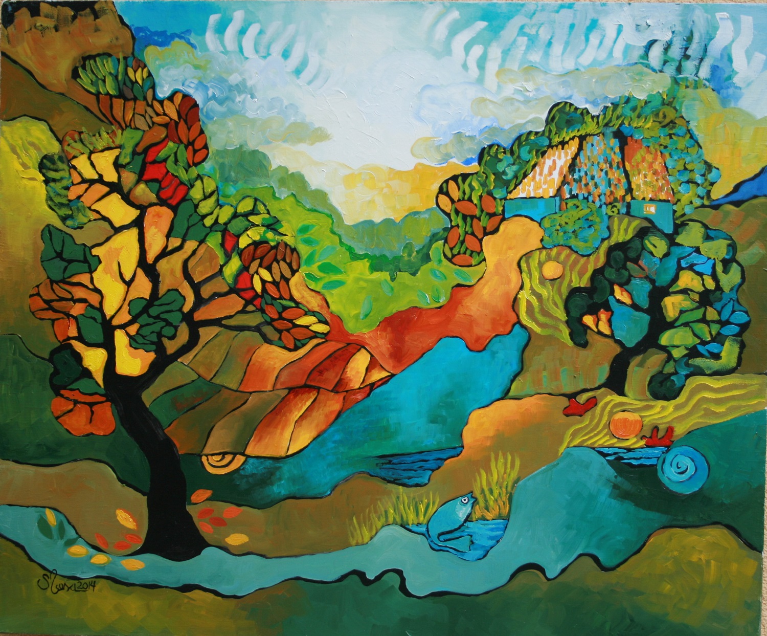 Stela Vesa sintetizează aceste două direcţii, astfel încât picturile sale sunt, în acelaşi timp, bi-dimensionale, dar şi, în mod extraordinar, pline de spaţiu. Această abordare a spaţiului creează o tensiune pozitivă în lucrările artistei, tensiune care dă naştere atât senzaţiei de mişcare, dar şi unei armonii senzoriale eterne între percepţiile vizuale şi cele intuite.