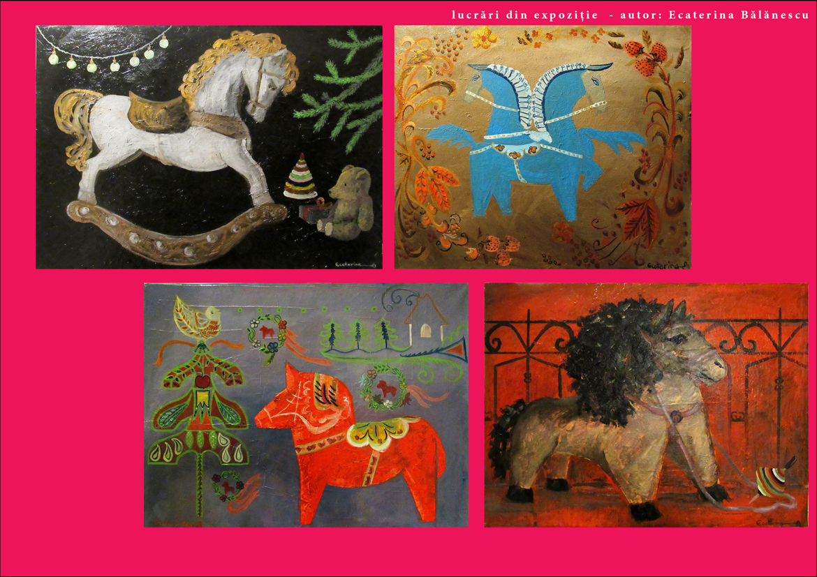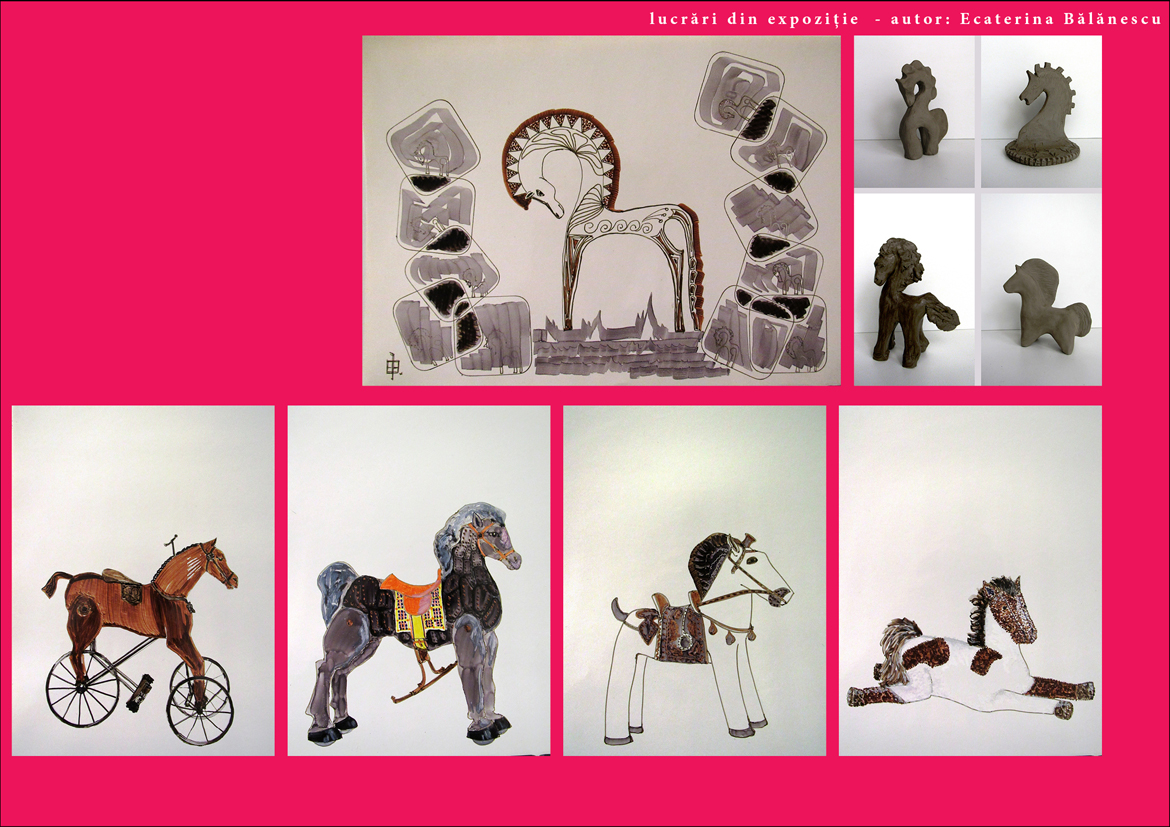 Strigăt de libertate, frământat în tropot de herghelie și Magia jucăriilor pentru copii.  Cele două artiste propun un dialog între studiul riguros, născător de întrebări profunde și joaca generatoare de răspunsuri inedite – pentru că – nu-i așa?! – dintodeauna studiul împletit cu joaca, se întrupează în cele mai frumoase creații pe care le poate concepe mintea și înfăptui mâinile omului.