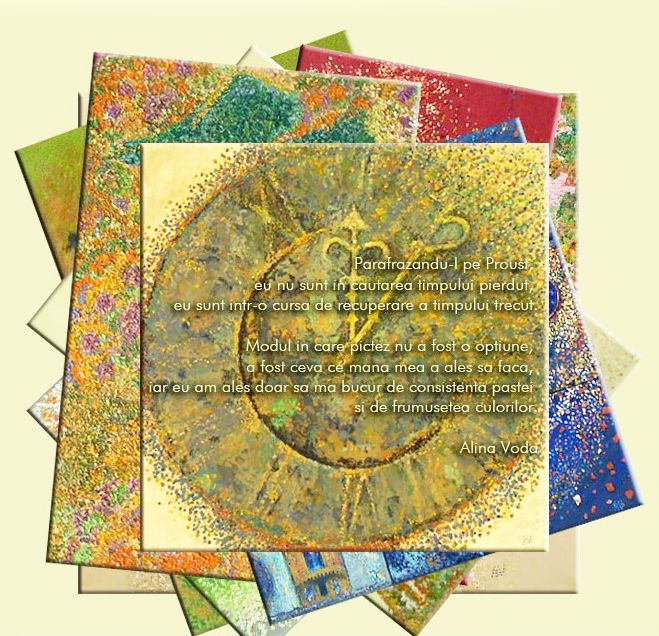 „Expozitia „Poarta” a Alinei Voda, a treia cu o tema a pictoritei, denota inclinatia ei pentru un efort sustinut pana la epuizarea logica si artistica a subiectului. A pornit initial de la solarul motiv al stalpului de poarta maramuresan, si apoi a explorat tema portii, vazuta prin prisma simbolismului ei de trecere dintr-o zona in alta – ultima de obicei superioara. Din ce in ce mai atrasa de motiv, s-a lasat inspirata de diferite intalniri si asociatii. Astfel contactul cu peisajul din sudul Frantei o aduce cel mai aproape de sensibilitatea franceza fata de pictura, in timp ce în compozitiile intitulate „Poarta raiului“, „Poarta sacra“, „Poarta imparateasca“ interpreteaza motive ale traditiei bizantine. Nu exclude ludicul în „Poarta in casa“ – schema precisa a jocului de table – sau „Poarta jocului“, dar nici registrul grav, ca apelul la istorie, în „Poarta istoriei“ – transformand obiecte ale artei dacice in simboluri ale intrarii in istorie a celor de pe aceste meleaguri. Toate acestea si multe altele sunt redate intr-o paleta luminoasa, intr-un soi de pointilism, in care punctul ce se transforma intr-o picatura cu un mic relief de pretioasa culoare, are rolul grifei personale”. (Dr. Mihaela Varga, critic si istoric de artă, 2012).